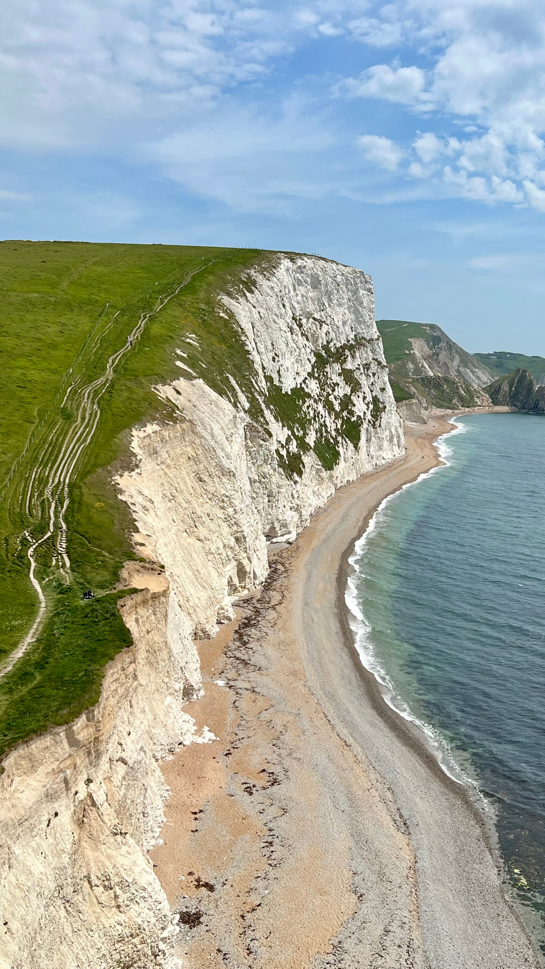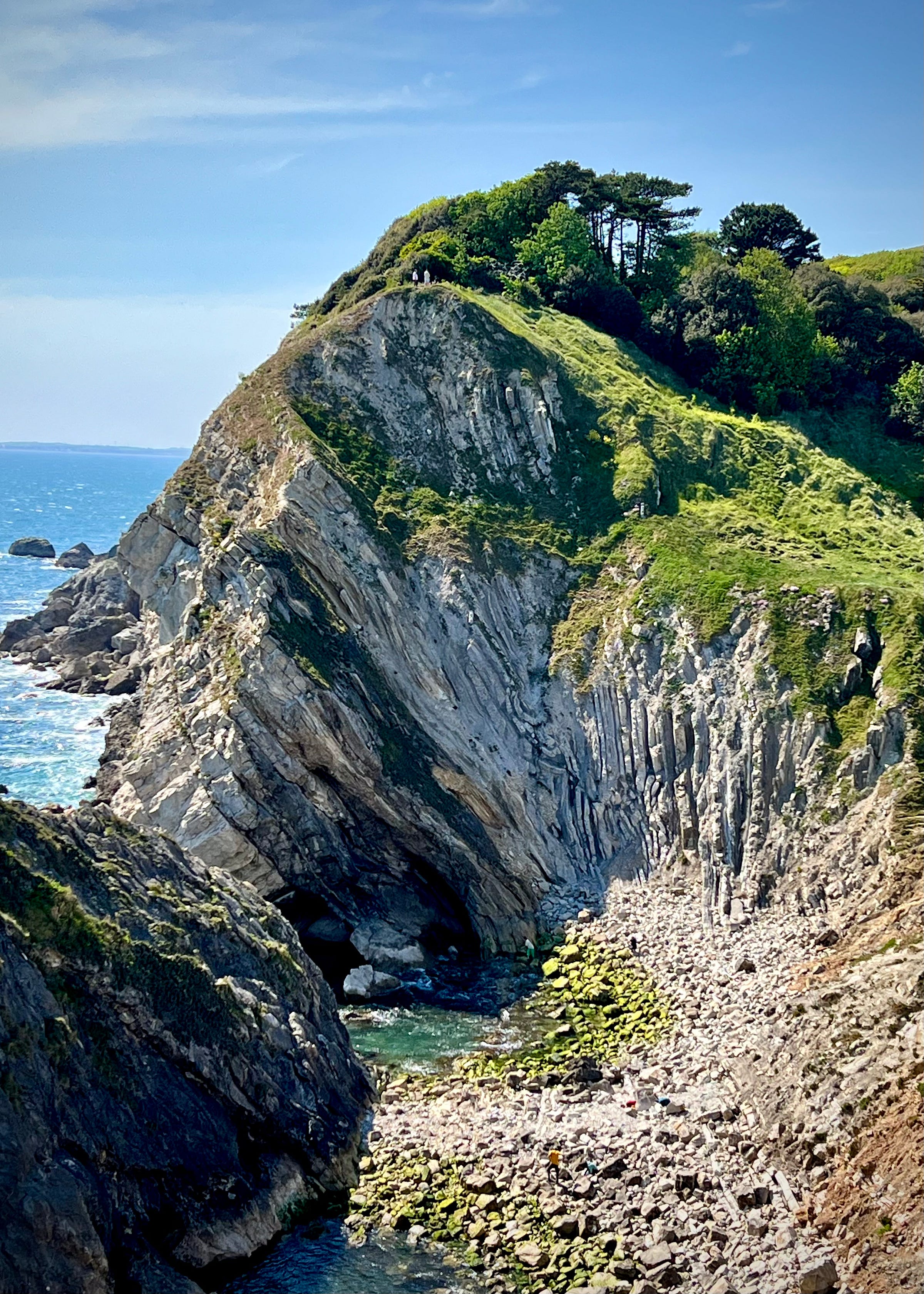 Chasmal beauty, sapphire wandering sea, as I go up and over chalk cliffs in spring, east of Durdle Door. One hundred and fifty million years beneath my hurried feat, and me a tiny percentage of it all. The rythm of up and down, cycles of success and defeat, though I know there are neither anymore, only rolling hills, a circular journey, taking me back across a ridge, to where skylarks hover over, ascend to silence, scan horizons I can imagine, but cannot see, before they fall to rise again in song. Landscape, sky scape, escape to where mystery and joy flow into wonder at simple harmony.